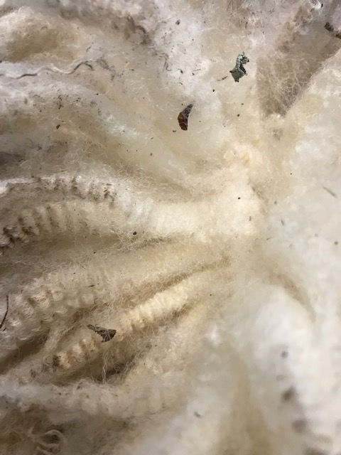 It all starts with the sheep. Our flock is sheared end of March when it starts to warm up and before the lambs are born in April. Once shorn the fleece is lightly skirted. Skirting is he process of removing the smaller pieces near the legs and the dirty piece near the tail. Reserving the prime blanket of the wool. When laid out on the table it's intact and looks just like it did while on the sheep.
